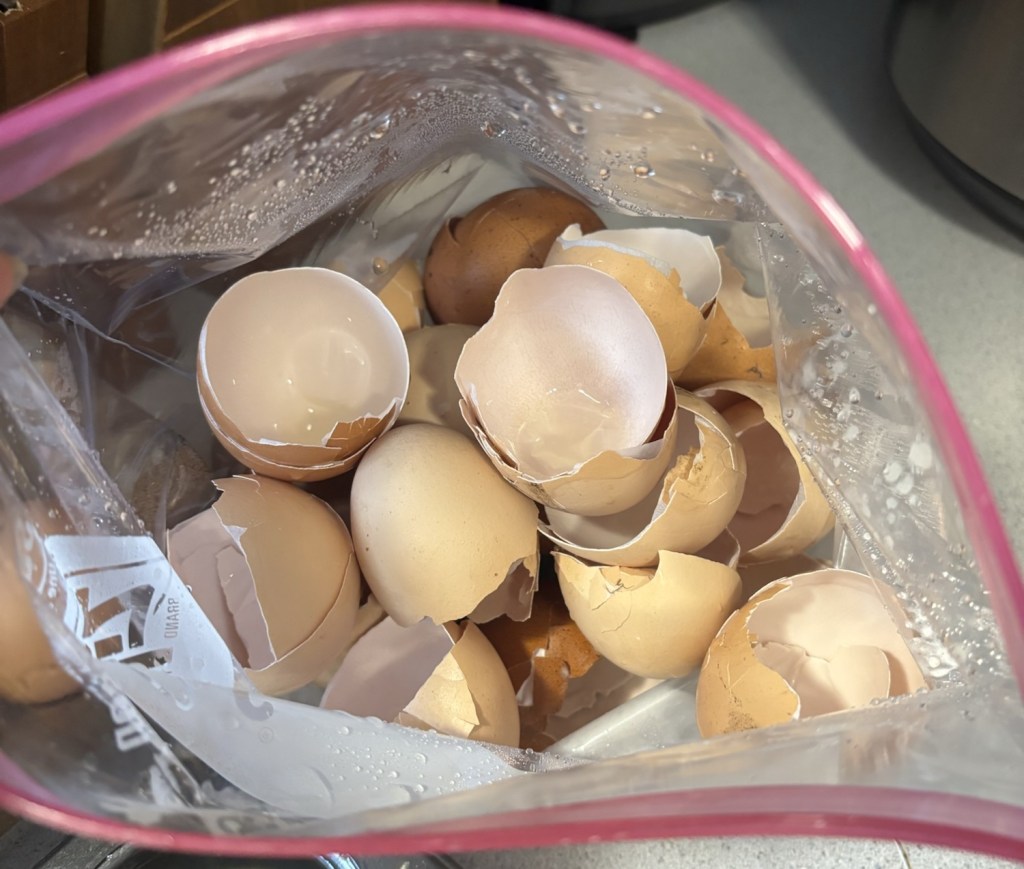 Here’s what I have done. Through the winter I saved all my eggshells in a plastic bag in the freezer. These build up fast!! Once the bag is full they get baked!
