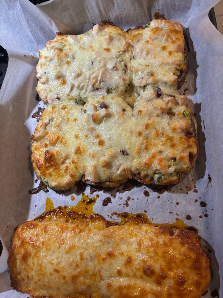 After getting your toppings piled on throw it in the oven for a half hour.